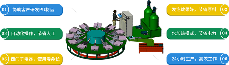 佛山市綠州機械設備有限公司專業從事研發、生產和銷售各類PU發泡設備,其產品暢銷世界各地。產品范圍:高低壓發泡機,各類PU鞋材半自動和全自動發泡生產線,高回彈 / 慢回彈自動生產線,PU耳塞自動生產線,彩鋼瓦生產線以及高溫彈性體澆注機等...